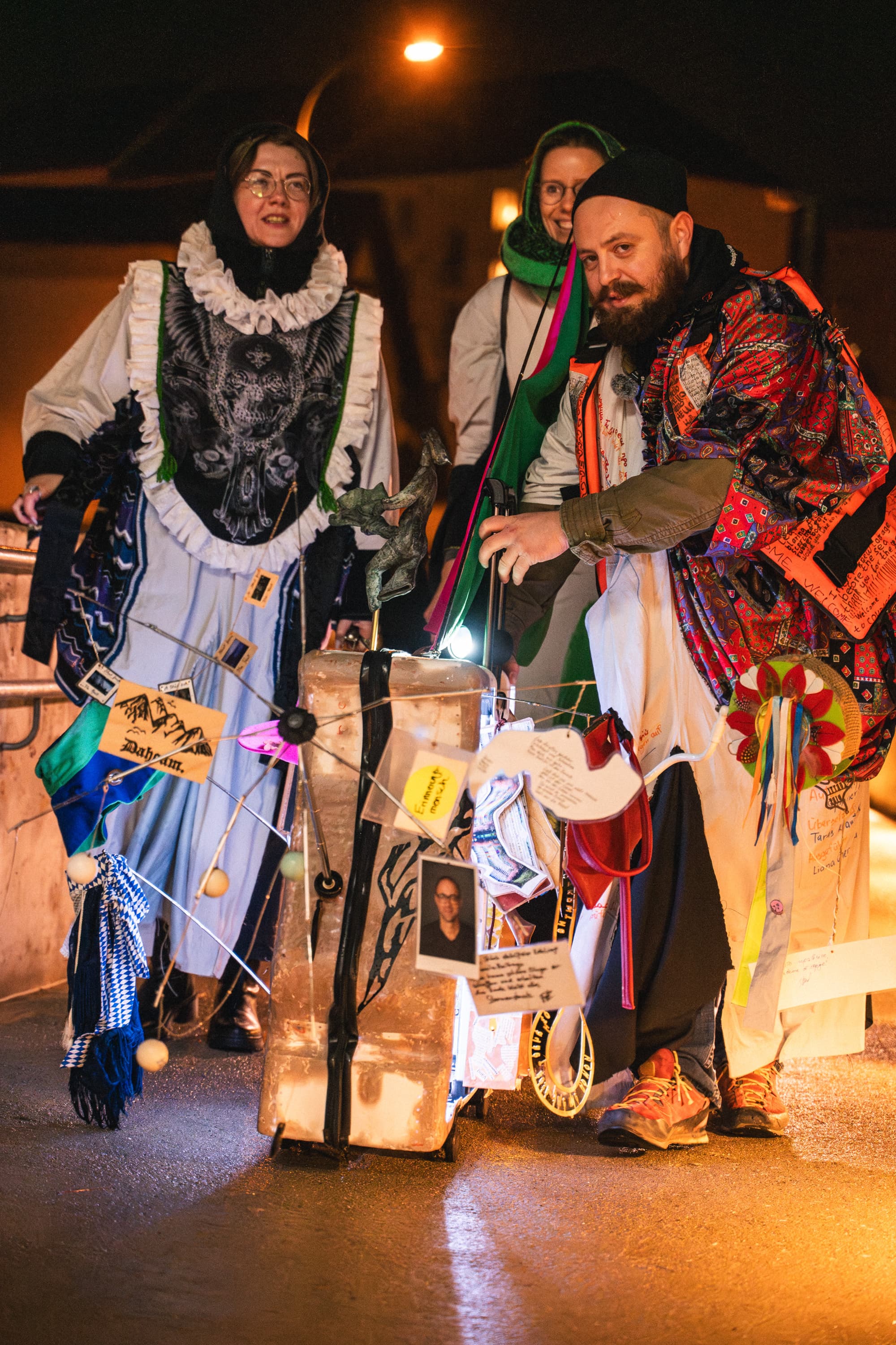 In den Jahren 2023 und 2024 verkörperten fünf Performer*innen den Erinnerungsmenschen in München-Giesing. In diesem Stadtteil verflechten sich verschiedene vergangene und gegenwärtige Bewegungen von Exil und Migration miteinander. Hier kannst Du mehr darüber erfahren.Um die globale Natur und die Ortspezifik von Exil und Migration zu erforschen, entwickeln wir das Konzept eines reisenden Monuments. Im Oktober 2024 war das Projekt im House of Arts in Ústí nad Labem, Tschechische Republik zu Gast, lies gerne mehr darüber hier.