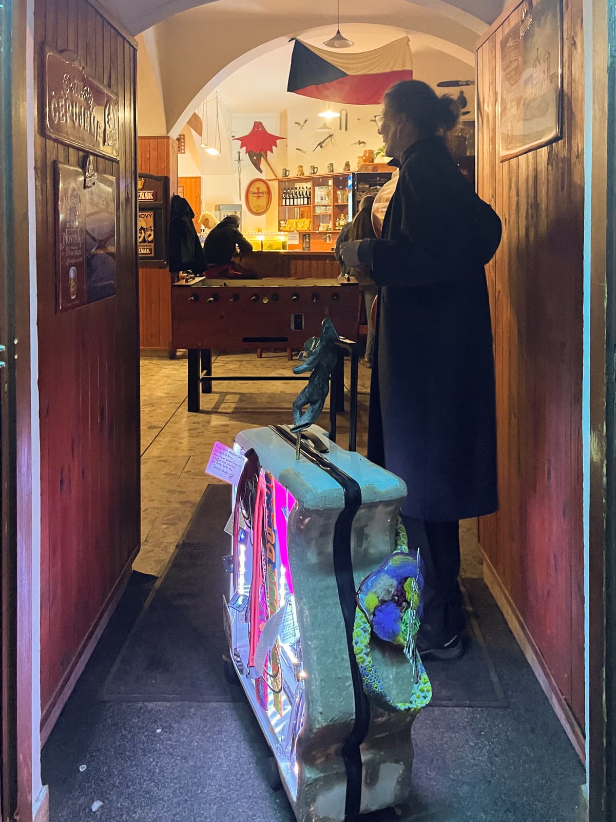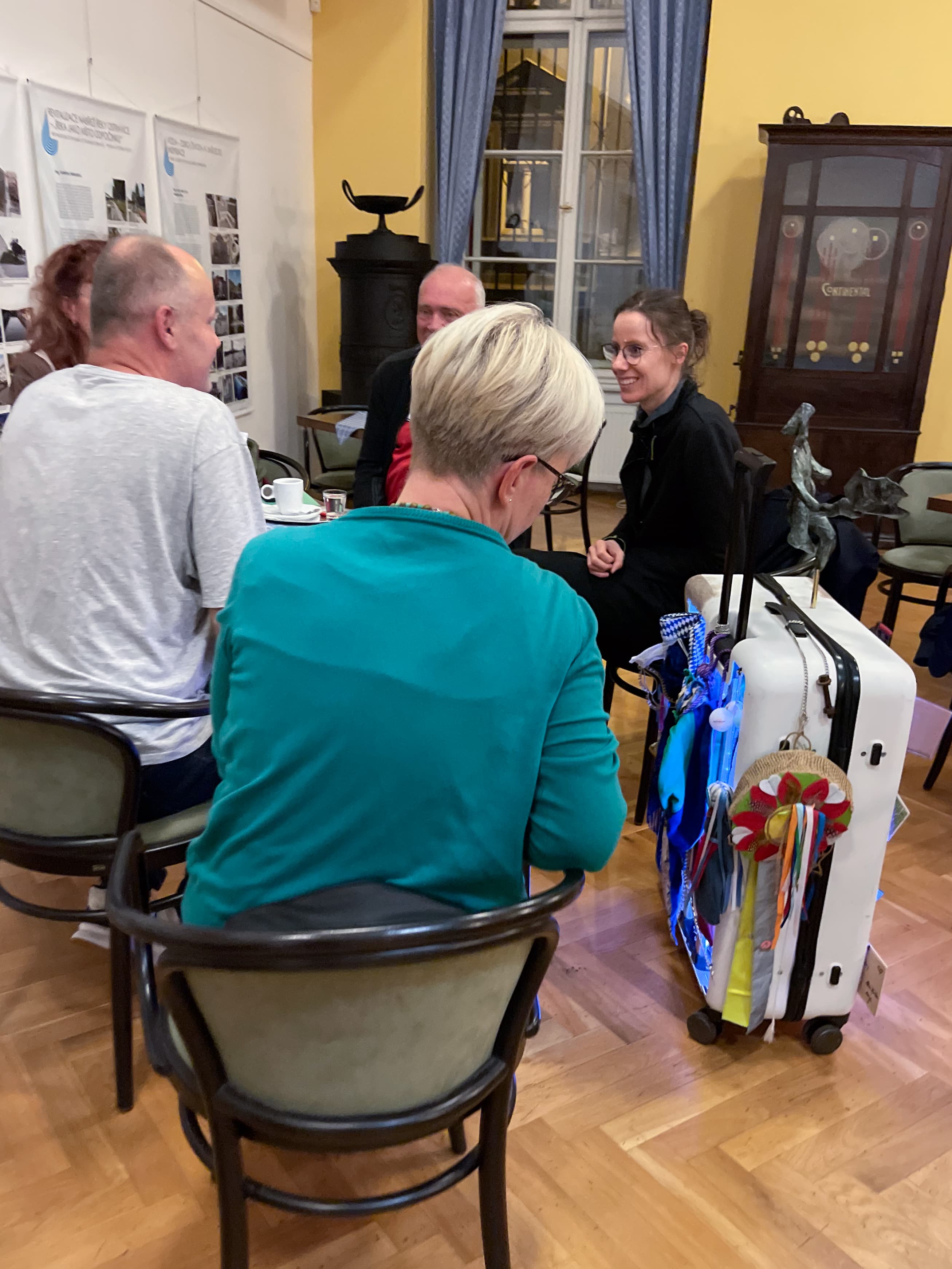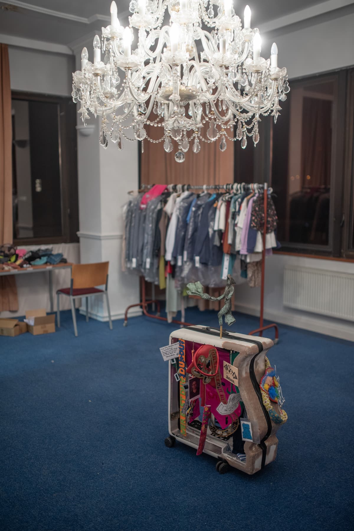Jegor Kondratyuk presents a collection of mementos housed within the suitcase. These objects, created both in Munich and Ústí nad Labem, offer a glimpse into the diverse histories and experiences in the context of exile and migration of the city's inhabitants.